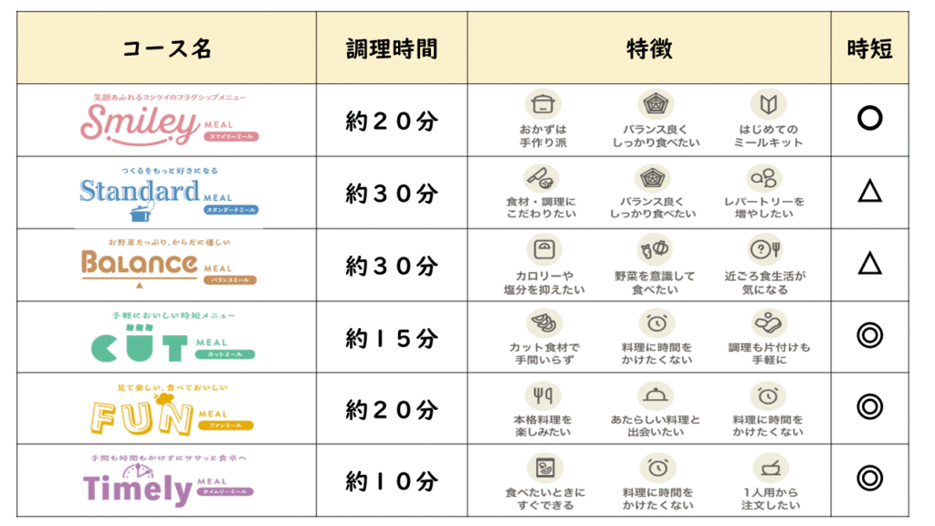 特に下記3つの時短コースはスイスイ調理ができますよ。